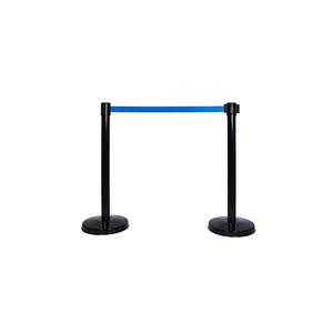 Barrera de cinturón retráctil de Control de multitudes, poste negro, cinturón azul, Base de goma SBB02SH MV, equipo de seguridad para multitudes, pintura electrostática